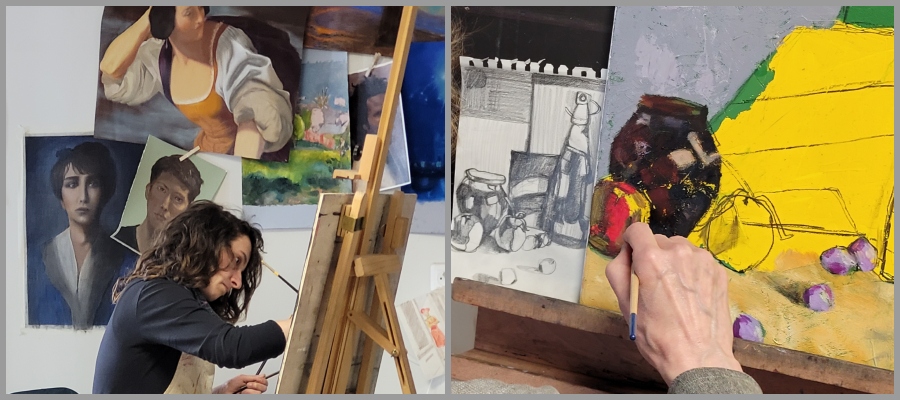 Le concept permet de réaliser une toile, ici à l’huile, étape par étape, en parallèle