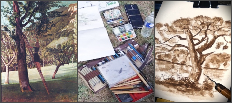 Quatre journées de stages de dessin dans les jardins et au bord de l’Erdre Dessiner