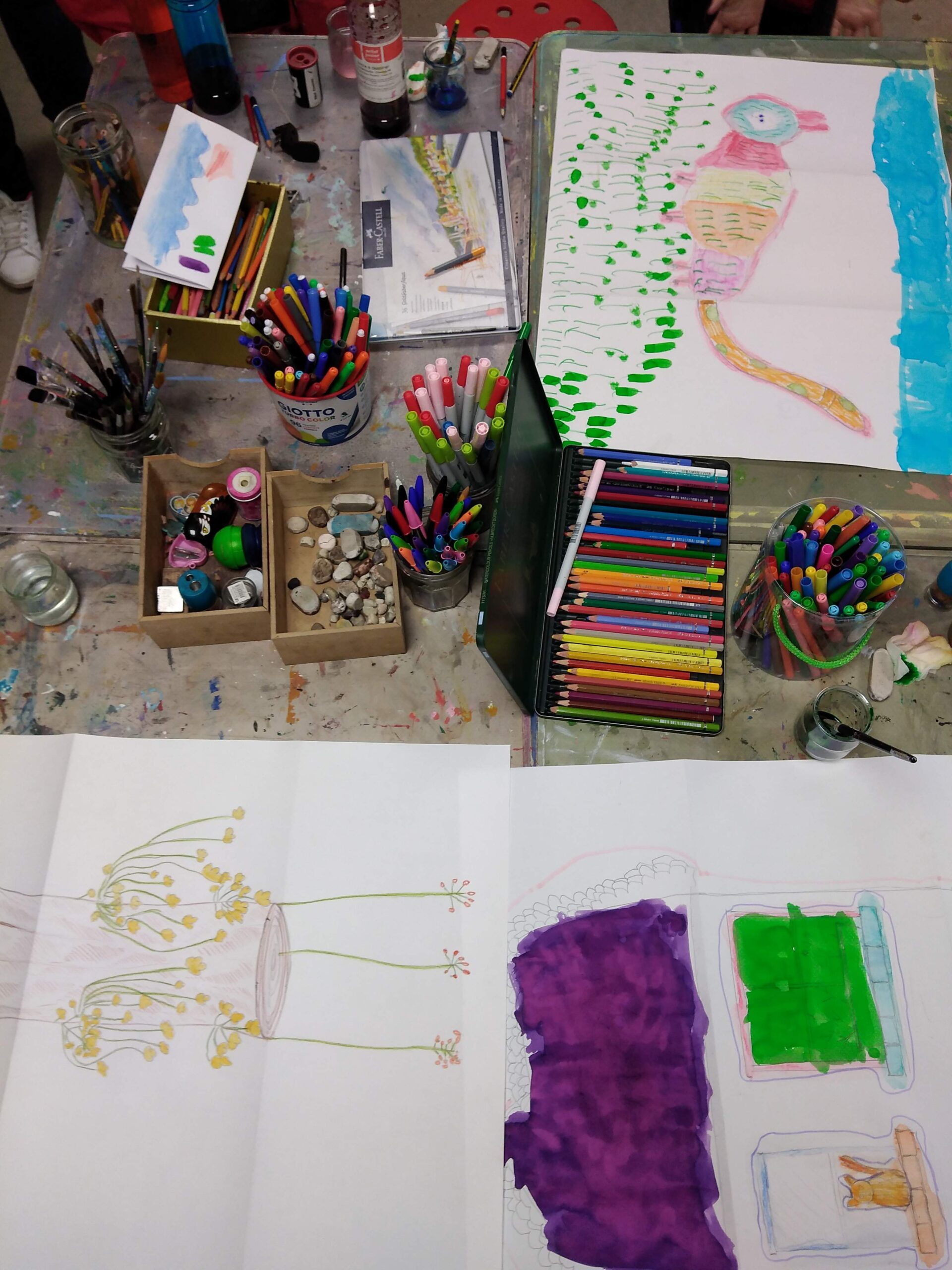 Dans cet atelier je propose aux enfants et à leur accompagnateur/trice de dessiner tour à tour sans que ni l’un ni l’autre n’aie vu au préalable ce que chacun à fait. Une fois terminé tout le monde découvre le dessin. S’en suit un travail à 4 mains en concertation pour harmoniser la production. Divers techniques peuvent être utilisées , encre, aquarelle, peinture. Je m’inscris !