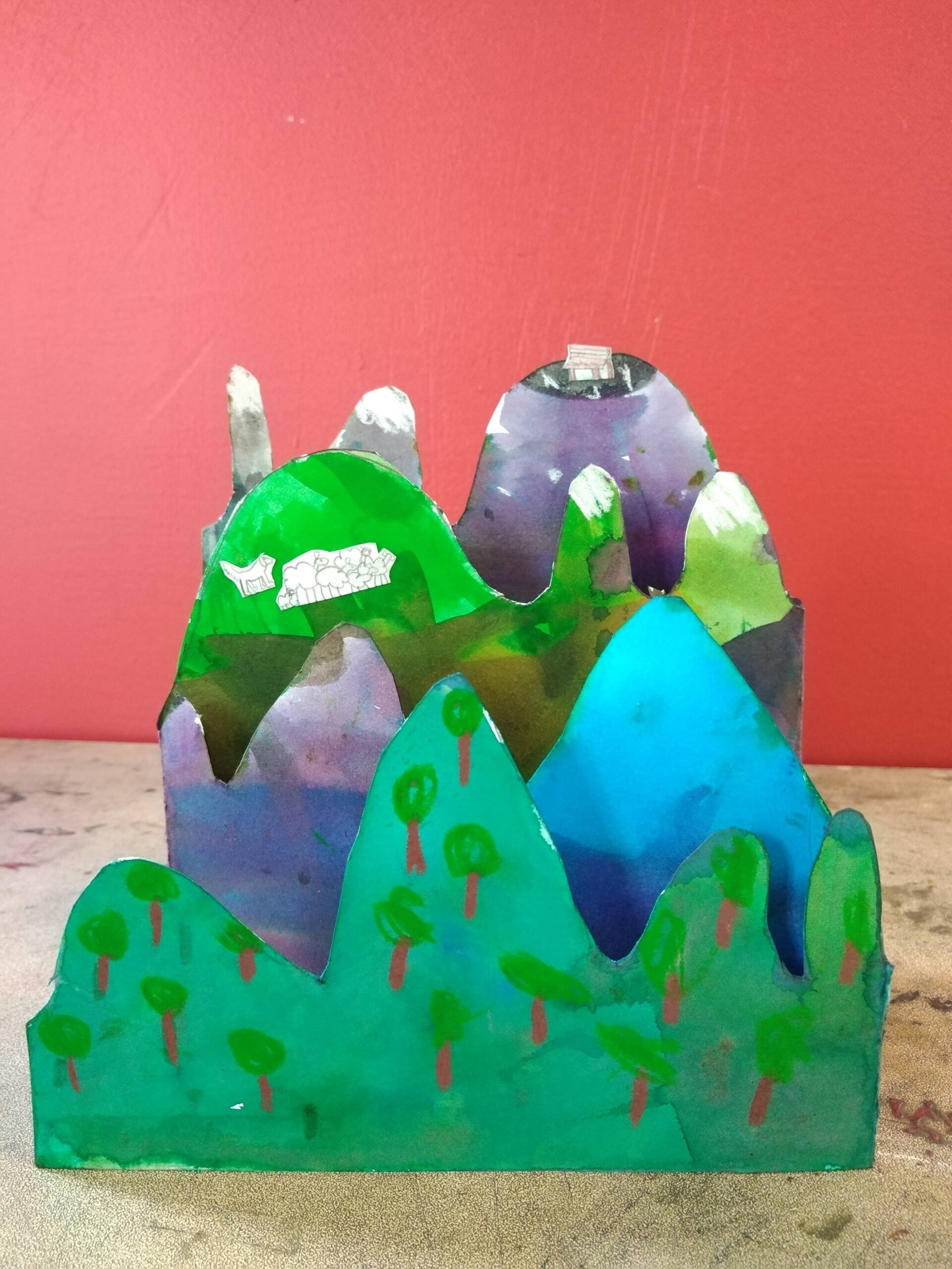 En reprenant le principe du Leporello, je propose ici aux enfants et à leur accompagnateur/trice de réaliser un paysage qui se déploie dans l’espace. Chaque duo réalisera son propre paysage extraordinaire. Je m’inscris !